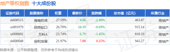 地产等权(399983)指数十大成份股详情如下: