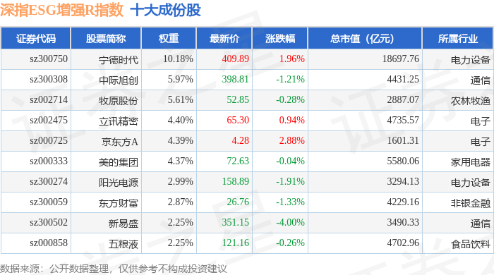 深指ESG增强R(470032)指数十大成份股详情如下: