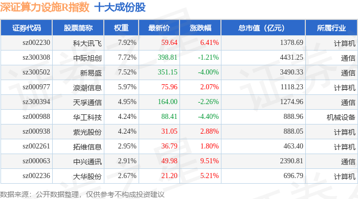 资金流向方面,深证算力设施R(470051)指数成份股当日主力资金净流出合计9.21亿元,游资资金净流出合计12.48亿元,散户资金净流入合计21.69亿元。成份股资金流向详情见下表: