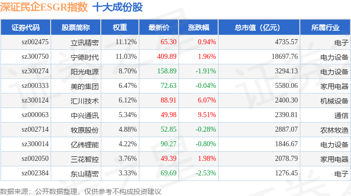 深证民企ESGR(470056)指数十大成份股详情如下: