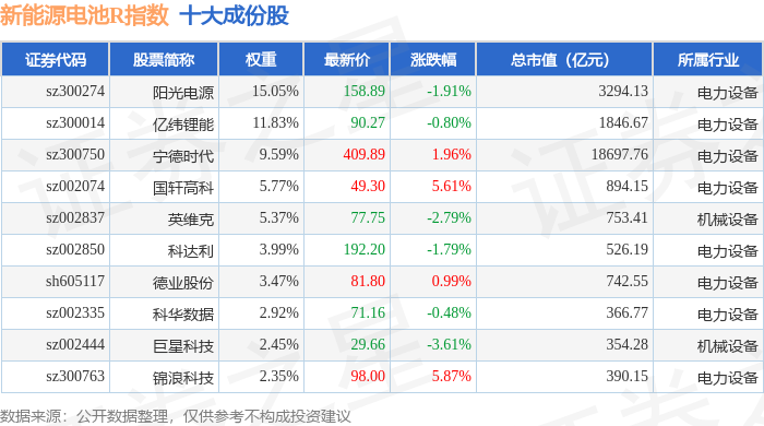 新能源电池R(480027)指数十大成份股详情如下: