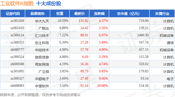 证券之星消息,10月9日,工业软件R(480034)指数报收于4003.36点,涨3.84%,成交490.0亿元,换手率3.9%。当日该指数成份股中,上涨的有41家,中望软件以20.0%的涨幅领涨,下跌的有9家,中恒电气以6.19%的跌幅领跌。