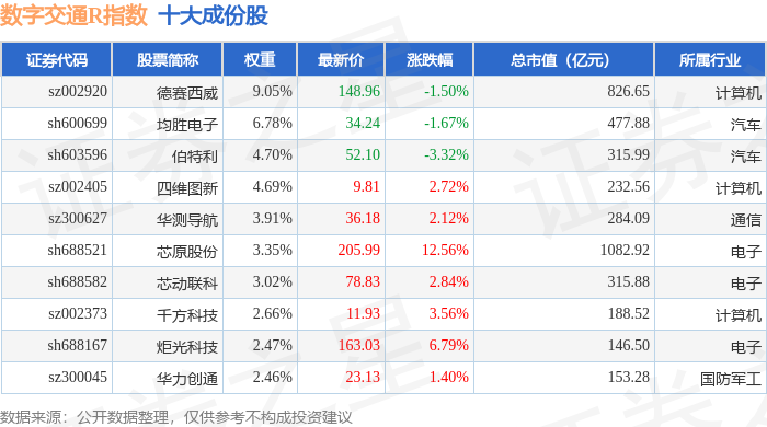 数字交通R(480075)指数十大成份股详情如下: