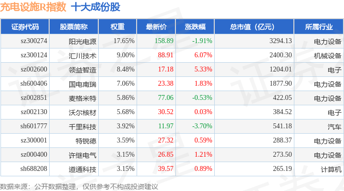 资金流向方面,充电设施R(480077)指数成份股当日主力资金净流出合计23.35亿元,游资资金净流入合计10.43亿元,散户资金净流入合计12.92亿元。成份股资金流向详情见下表: