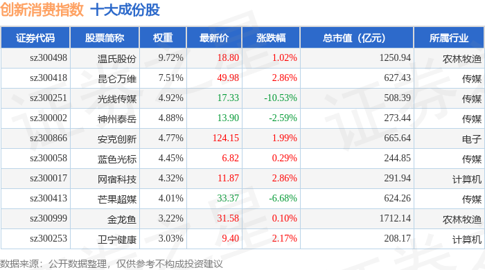 资金流向方面,创新消费(970041)指数成份股当日主力资金净流出合计10.36亿元,游资资金净流入合计4.07亿元,散户资金净流入合计6.28亿元。成份股资金流向详情见下表: