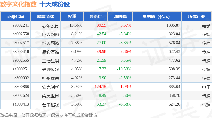 数字文化(970047)指数十大成份股详情如下:
