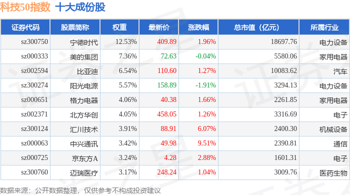 证券之星消息,10月9日,科技50(970080)指数报收于3400.16点,涨2.49%,成交2393.06亿元,换手率3.44%。当日该指数成份股中,上涨的有43家,通富微电以10.01%的涨幅领涨,下跌的有7家,华工科技以4.4%的跌幅领跌。