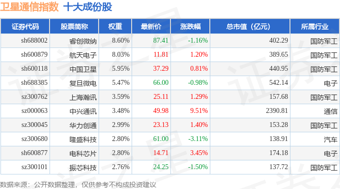 近10日内卫星通信(980018)指数成份股做了调整,新纳入了1只股票,剔除了1只股票。