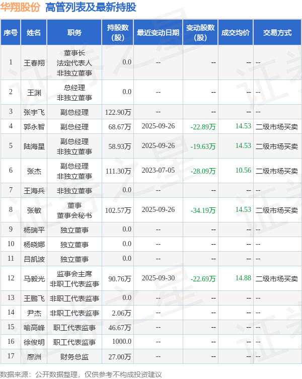 华翔股份近半年内的董监高及核心技术人员增减持详情如下:
