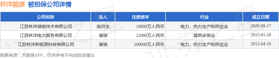 林洋能源10月8日披露3笔对外担保,被担保公司3家。对外担保明细如下表: