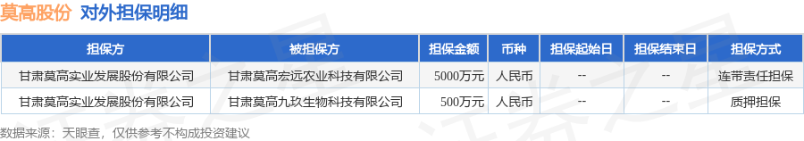 莫高股份9月30日披露2笔对外担保,被担保公司2家。对外担保明细如下表:
