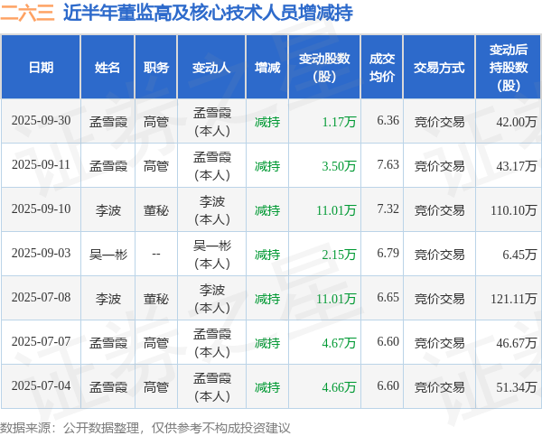 二六三近半年内的董监高及核心技术人员增减持详情如下: