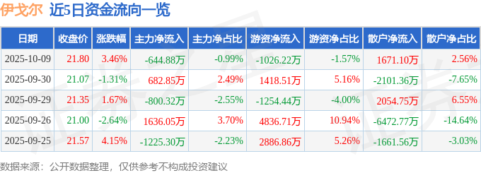 10月9日的资金流向数据方面,主力资金净流出644.88万元,占总成交额0.99%,游资资金净流出1026.22万元,占总成交额1.57%,散户资金净流入1671.1万元,占总成交额2.56%。