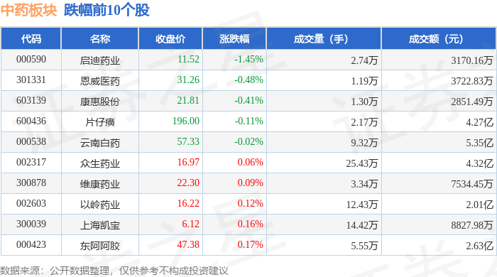 证券之星消息,10月10日中药板块较上一交易日上涨0.96%,万邦德领涨。当日上证指数报收于3897.03,下跌0.94%。深证成指报收于13355.42,下跌2.7%。中药板块个股涨跌见下表: