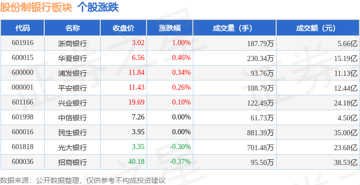 从资金流向上来看,当日股份制银行板块主力资金净流出14.22亿元,游资资金净流入4.57亿元,散户资金净流入9.64亿元。股份制银行板块个股资金流向见下表: