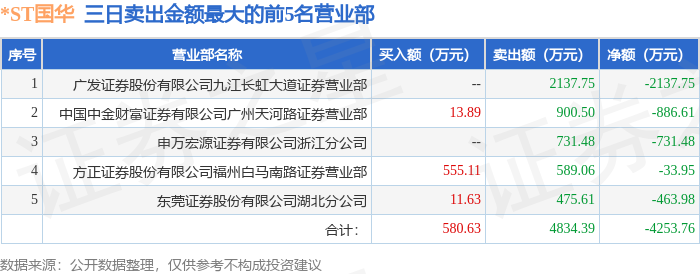 证券之星消息,沪深交易所2025年10月10日公布的交易公开信息显示,*ST国华(000004)因连续三个交易日内,涨幅偏离值累计达到12%的ST证券、*ST证券和未完成股改证券登上龙虎榜。此次是近5个交易日内第1次上榜。