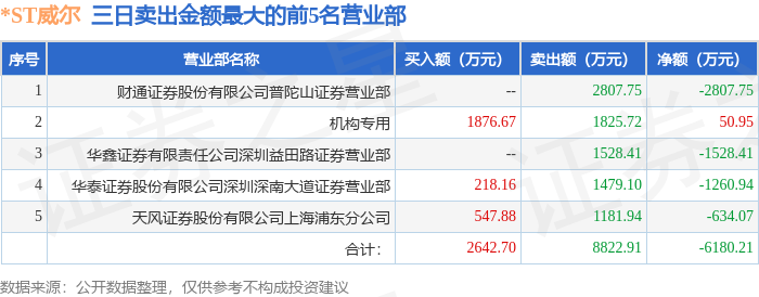证券之星消息,沪深交易所2025年10月10日公布的交易公开信息显示,*ST威尔(002058)因连续三个交易日内,涨幅偏离值累计达到12%的ST证券、*ST证券和未完成股改证券登上龙虎榜。此次是近5个交易日内第1次上榜。