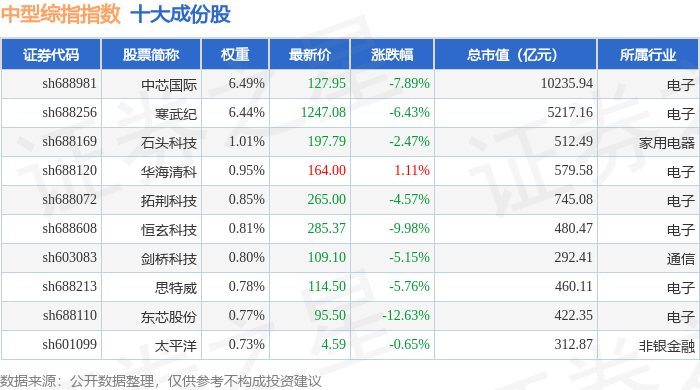 中型综指(000020)指数十大成份股详情如下: