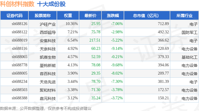 科创材料(000689)指数十大成份股详情如下: