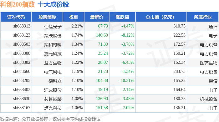证券之星消息,10月10日,科创200(000699)指数报收于1279.69点,跌3.54%,成交678.52亿元,换手率3.58%。当日该指数成份股中,上涨的有28家,中国电研以8.55%的涨幅领涨,下跌的有169家,艾罗能源以14.38%的跌幅领跌。
