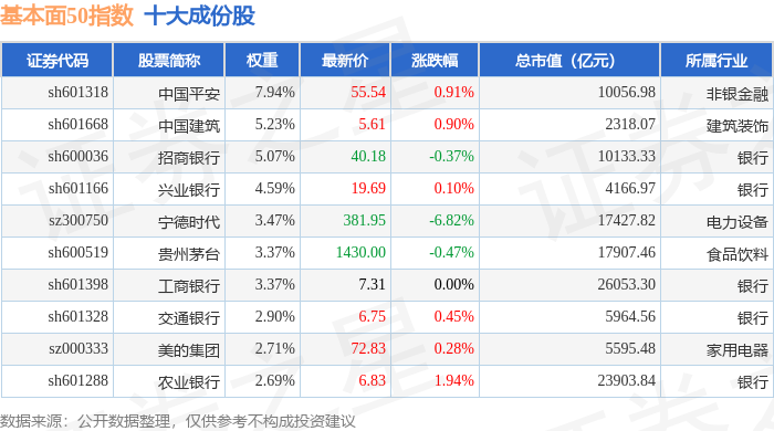 证券之星消息,10月10日,基本面50(000925)指数报收于4567.05点,跌0.07%,成交1293.92亿元,换手率0.5%。当日该指数成份股中,上涨的有30家,上海银行以2.57%的涨幅领涨,下跌的有13家,宁德时代以6.82%的跌幅领跌。