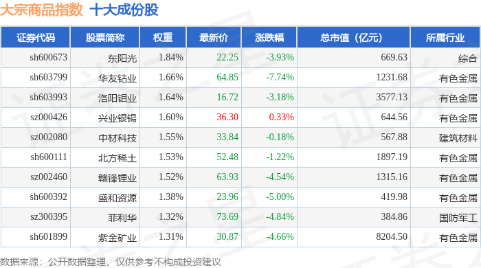 大宗商品(000979)指数十大成份股详情如下: