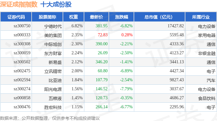 资金流向方面,深证成指(399001)指数成份股当日主力资金净流出合计622.5亿元,游资资金净流入合计190.04亿元,散户资金净流入合计432.46亿元。成份股资金流向详情见下表: