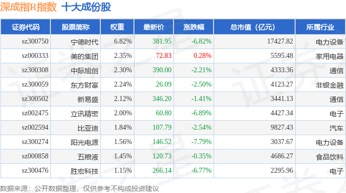 证券之星消息,10月10日,深成指R(399002)指数报收于17890.06点,跌2.69%,成交7624.21亿元,换手率2.33%。当日该指数成份股中,上涨的有201家,国信证券以5.94%的涨幅领涨,下跌的有293家,惠城环保以13.09%的跌幅领跌。