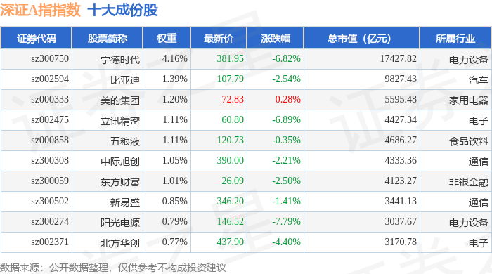 深证A指(399107)指数十大成份股详情如下: