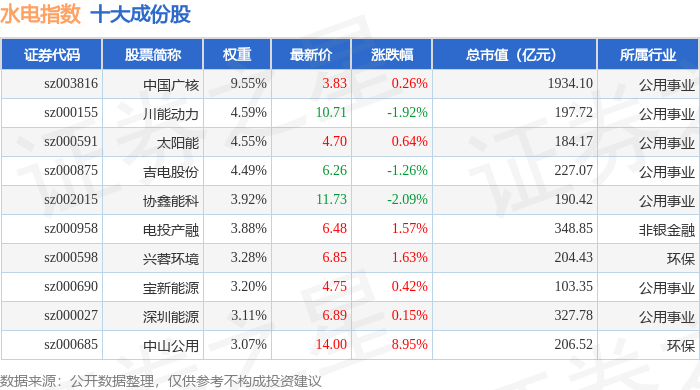 近10日内水电指数(399234)成份股做了调整,新纳入了1只股票。
