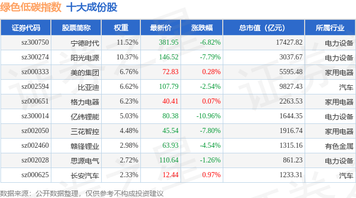 资金流向方面,绿色低碳(399258)指数成份股当日主力资金净流出合计199.96亿元,游资资金净流入合计58.64亿元,散户资金净流入合计141.32亿元。成份股资金流向详情见下表: