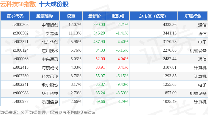 证券之星消息,10月10日,云科技50(399279)指数报收于4822.12点,跌3.48%,成交1994.74亿元,换手率4.51%。当日该指数成份股中,上涨的有7家,扬杰科技以5.59%的涨幅领涨,下跌的有42家,歌尔股份以9.4%的跌幅领跌。