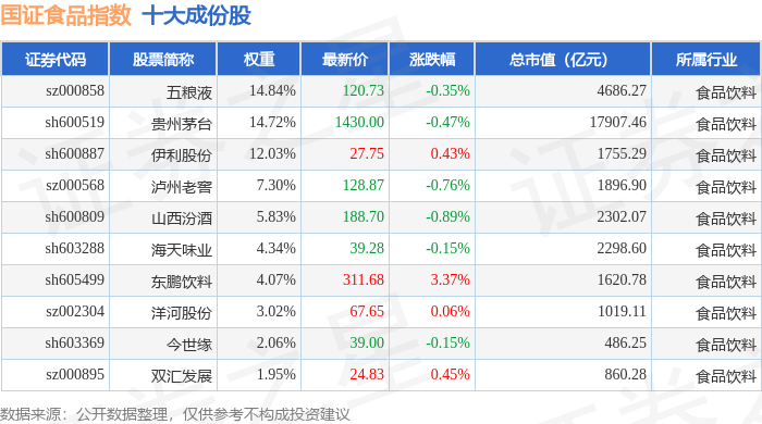 国证食品(399396)指数十大成份股详情如下: