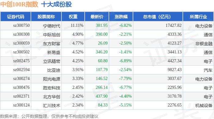 资金流向方面,中创100R(399611)指数成份股当日主力资金净流出合计382.48亿元,游资资金净流入合计125.9亿元,散户资金净流入合计256.58亿元。成份股资金流向详情见下表: