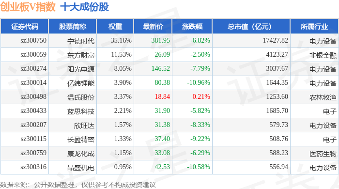 证券之星消息,10月10日,创业板V(399668)指数报收于5397.93点,跌4.79%,成交1397.76亿元,换手率3.73%。当日该指数成份股中,上涨的有44家,英科医疗以5.75%的涨幅领涨,下跌的有56家,亿纬锂能以10.96%的跌幅领跌。