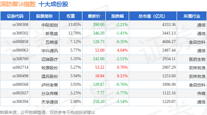 深防御50(399671)指数十大成份股详情如下: