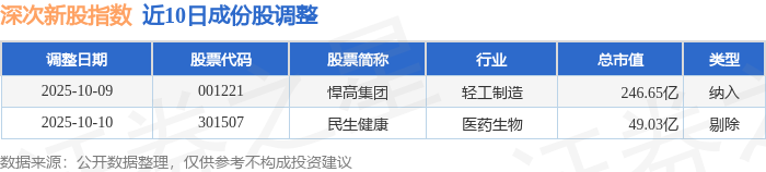 近10日内深次新股(399678)指数成份股做了调整,新纳入了1只股票,剔除了1只股票。