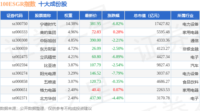 100ESGR(470027)指数十大成份股详情如下: