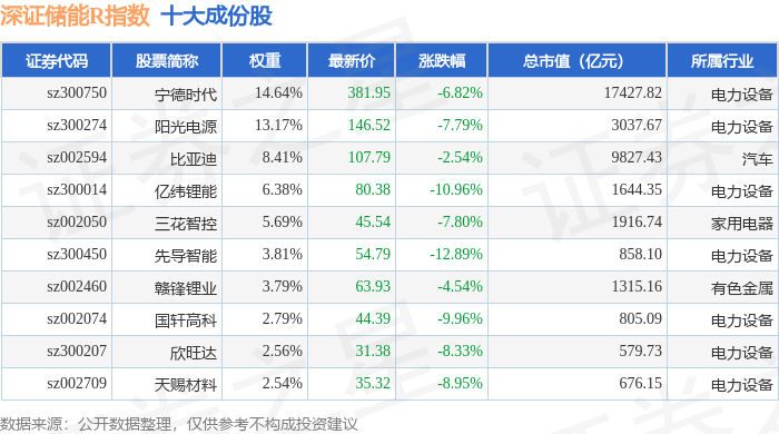 资金流向方面,深证储能R(470036)指数成份股当日主力资金净流出合计213.21亿元,游资资金净流入合计63.4亿元,散户资金净流入合计149.81亿元。成份股资金流向详情见下表: