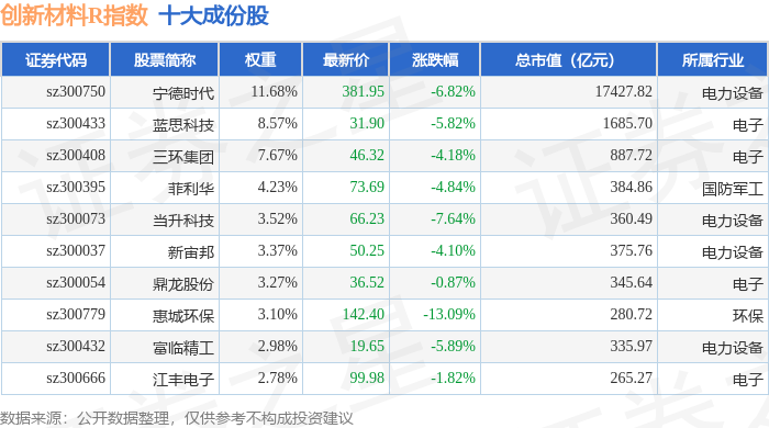 创新材料R(470039)指数十大成份股详情如下: