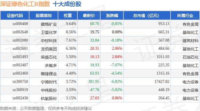 深证绿色化工R(470076)指数十大成份股详情如下: