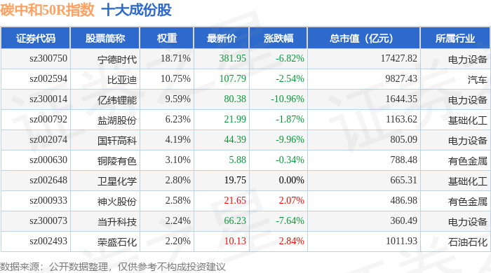 碳中和50R(480021)指数十大成份股详情如下: