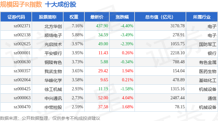 证券之星消息,10月10日,规模因子R(480055)指数报收于2384.7点,跌1.01%,成交1049.45亿元,换手率3.04%。当日该指数成份股中,上涨的有24家,国信证券以5.94%的涨幅领涨,下跌的有25家,上能电气以13.72%的跌幅领跌。