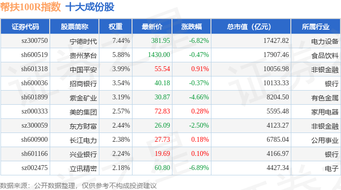 帮扶100R(480065)指数十大成份股详情如下:
