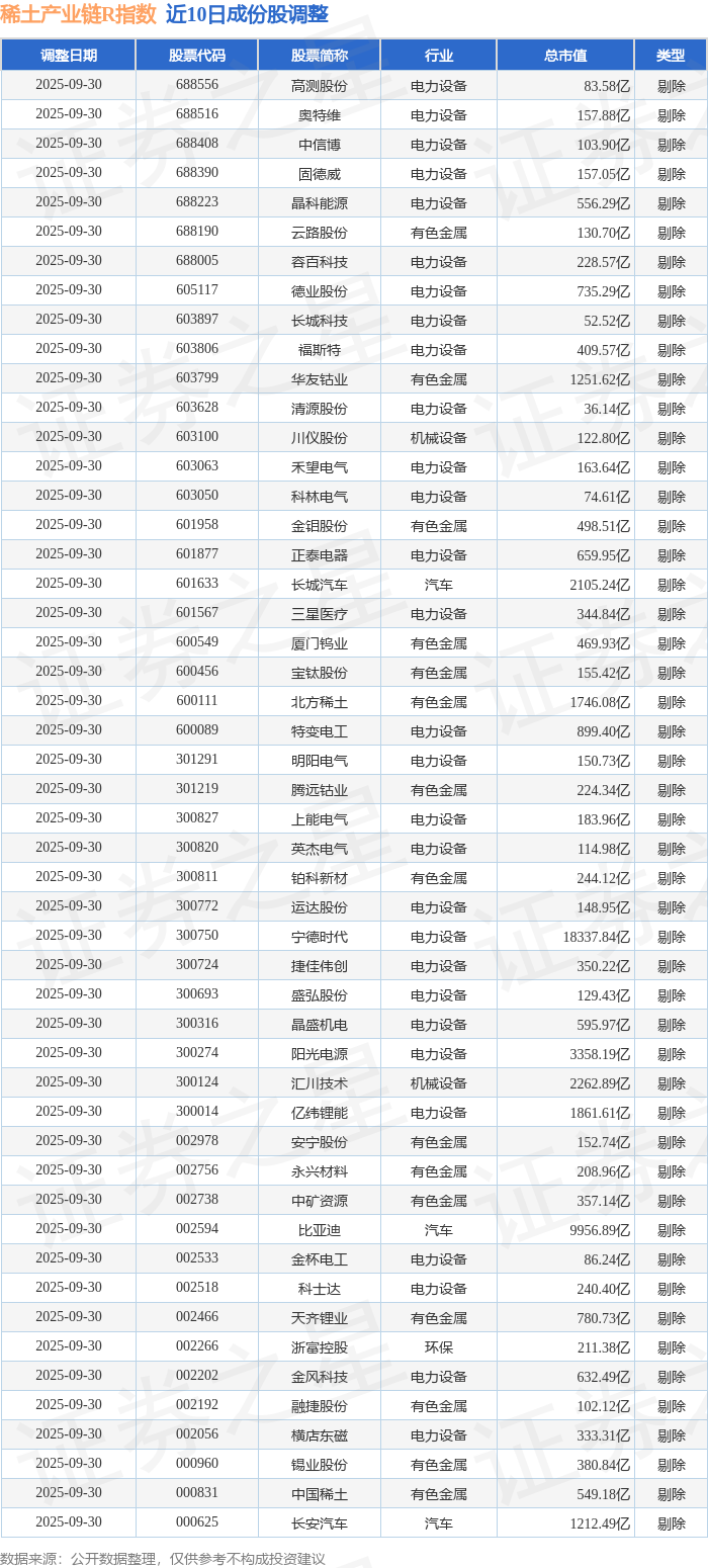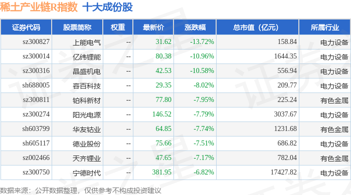 近10日内稀土产业链R(489013)指数成份股做了调整,剔除了50只股票。