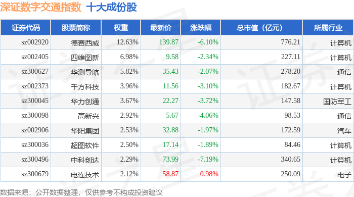 深证数字交通(970049)指数十大成份股详情如下: