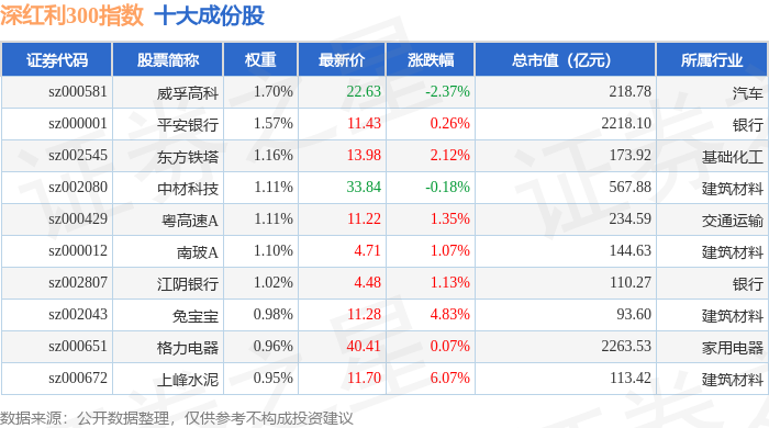 证券之星消息,10月10日,深红利300(970062)指数报收于5592.36点,跌0.02%,成交2695.35亿元,换手率2.51%。当日该指数成份股中,上涨的有153家,中山公用以8.95%的涨幅领涨,下跌的有142家,晶盛机电以10.58%的跌幅领跌。