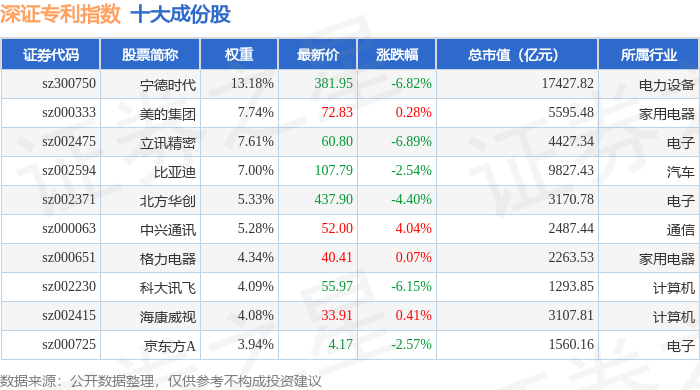 证券之星消息,10月10日,深证专利(970067)指数报收于5060.88点,跌3.59%,成交1611.78亿元,换手率2.58%。当日该指数成份股中,上涨的有10家,中兴通讯以4.04%的涨幅领涨,下跌的有40家,歌尔股份以9.4%的跌幅领跌。