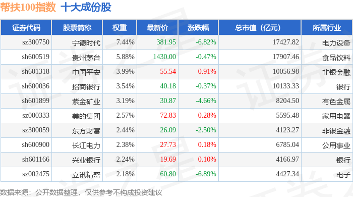 帮扶100(980065)指数十大成份股详情如下: