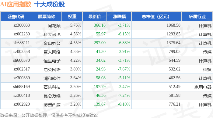 AI应用(980112)指数十大成份股详情如下:
